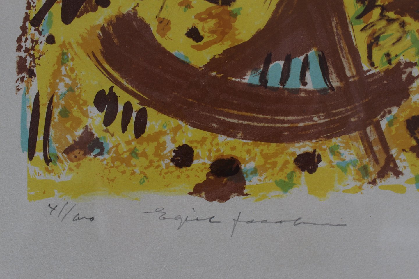 Farvelitografi 41/100 i guldramme af træ