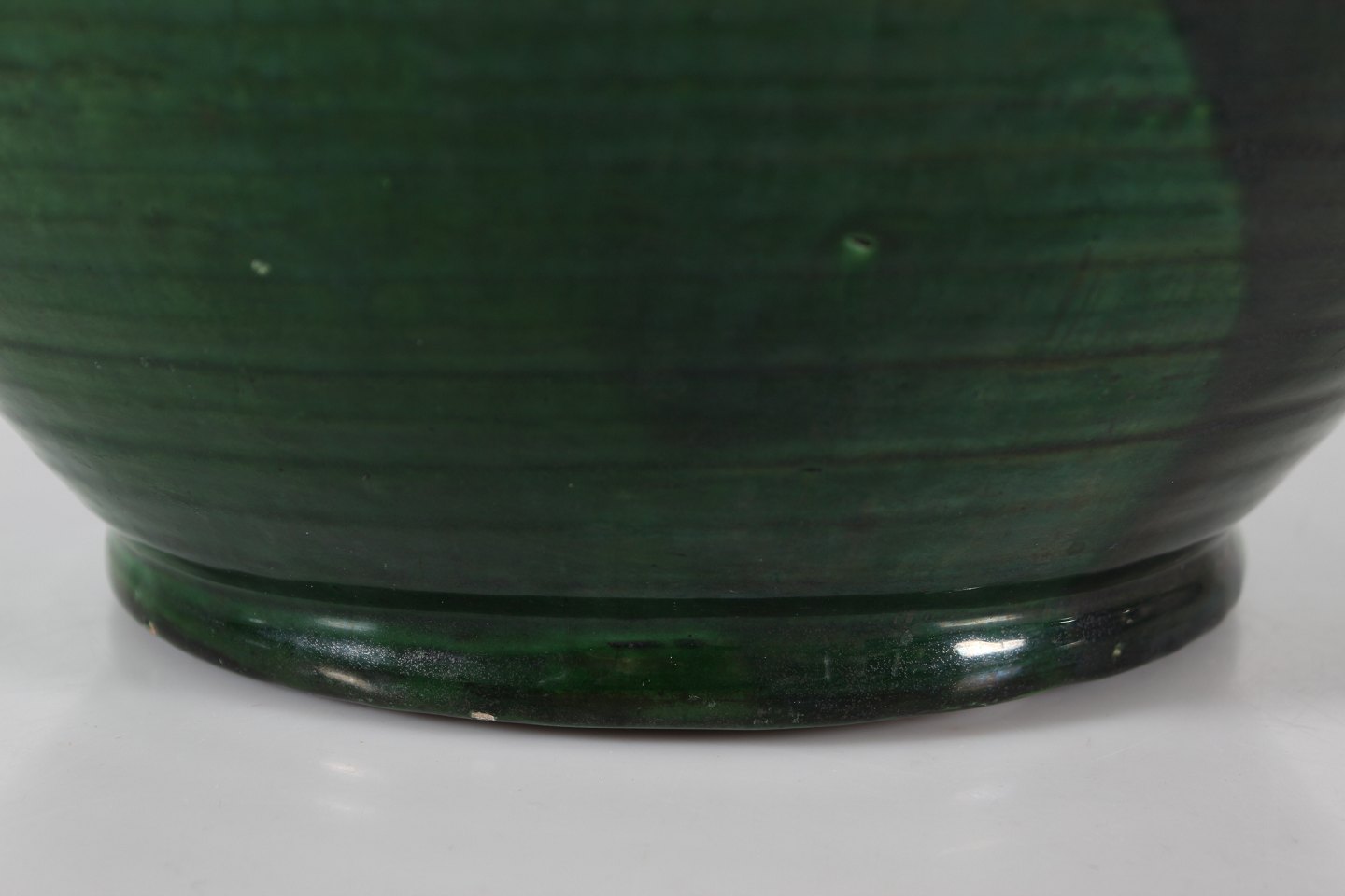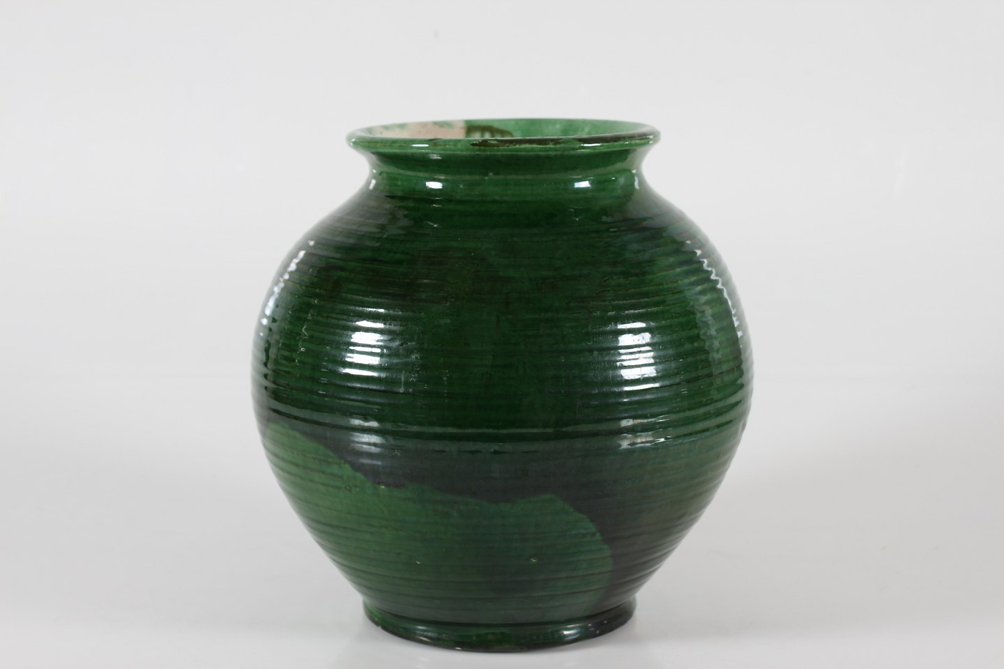 Dansk Keramikker Stor gulvvase med græsgrøn glasur Højde 35 cm Diameter 33 cm Fin stand - se billeder af små afslag