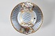 Limoges France Blækhus af porcelæn m/kvadratisk mønster og blomsterdekoration Højde 7 cm Diameter blækhus 8,5 cm Diameter tallerken 16 cm Fin stand - se billeder af små afslag på underkanten af låg