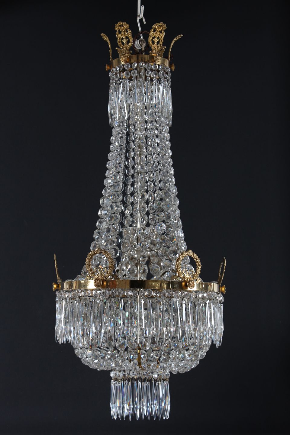 Stor prismelysekrone i empire stil fra ca. år 1900