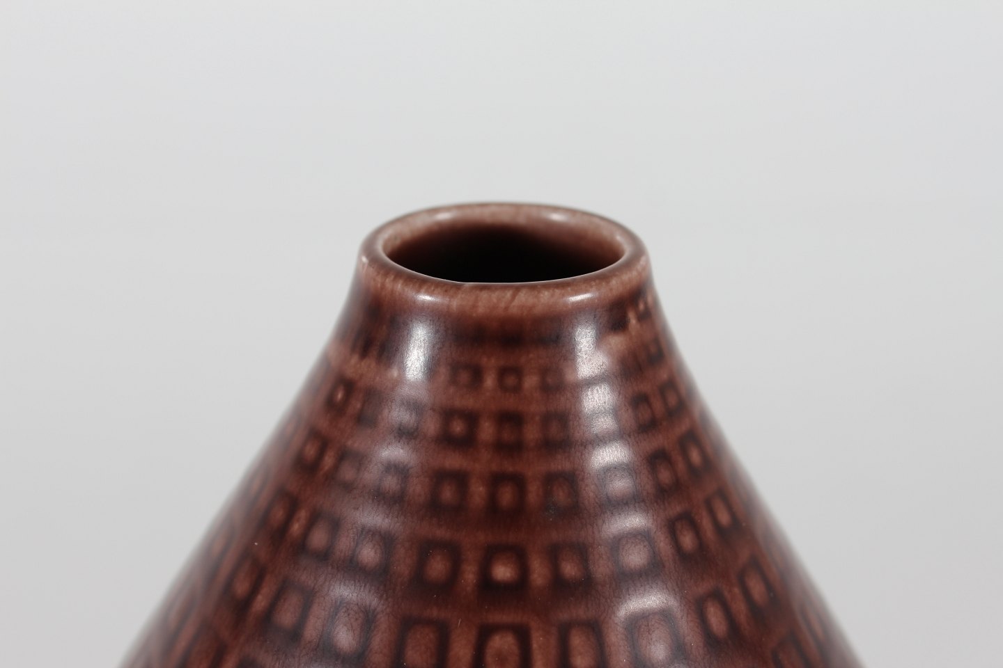 med brunlig glasur over et mønster af små kvadrater