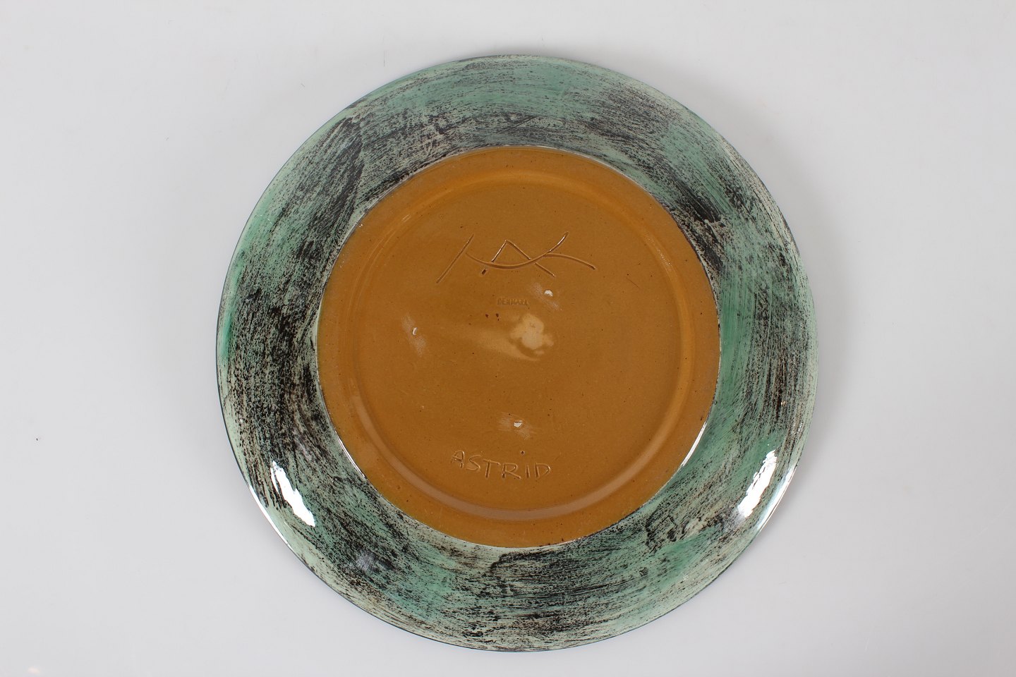 Stort cirkulært keramik fad med fiske dekoration
