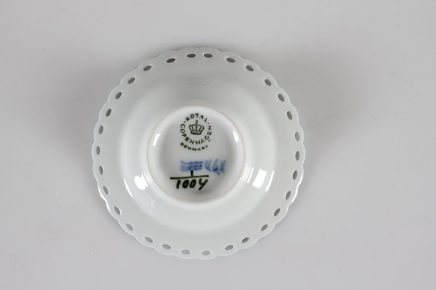 Royal Copenhagen Musselmalet Helblonde Små runde kuvert assietter model nr. 1/1004 Diameter 7,5 cm Fin fejlfri 1. sortering