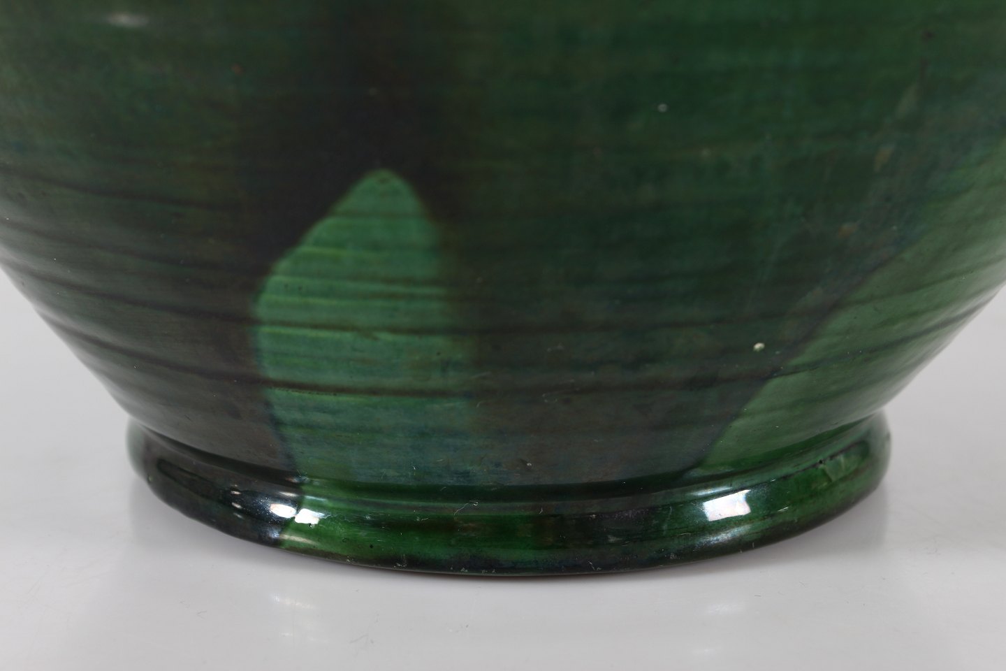 Dansk Keramikker Stor gulvvase med græsgrøn glasur Højde 35 cm Diameter 33 cm Fin stand - se billeder af små afslag